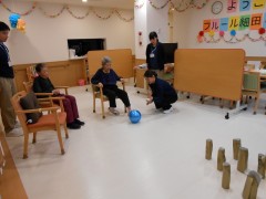 みんなでラジオ体操をしたり            ボーリングをやったり