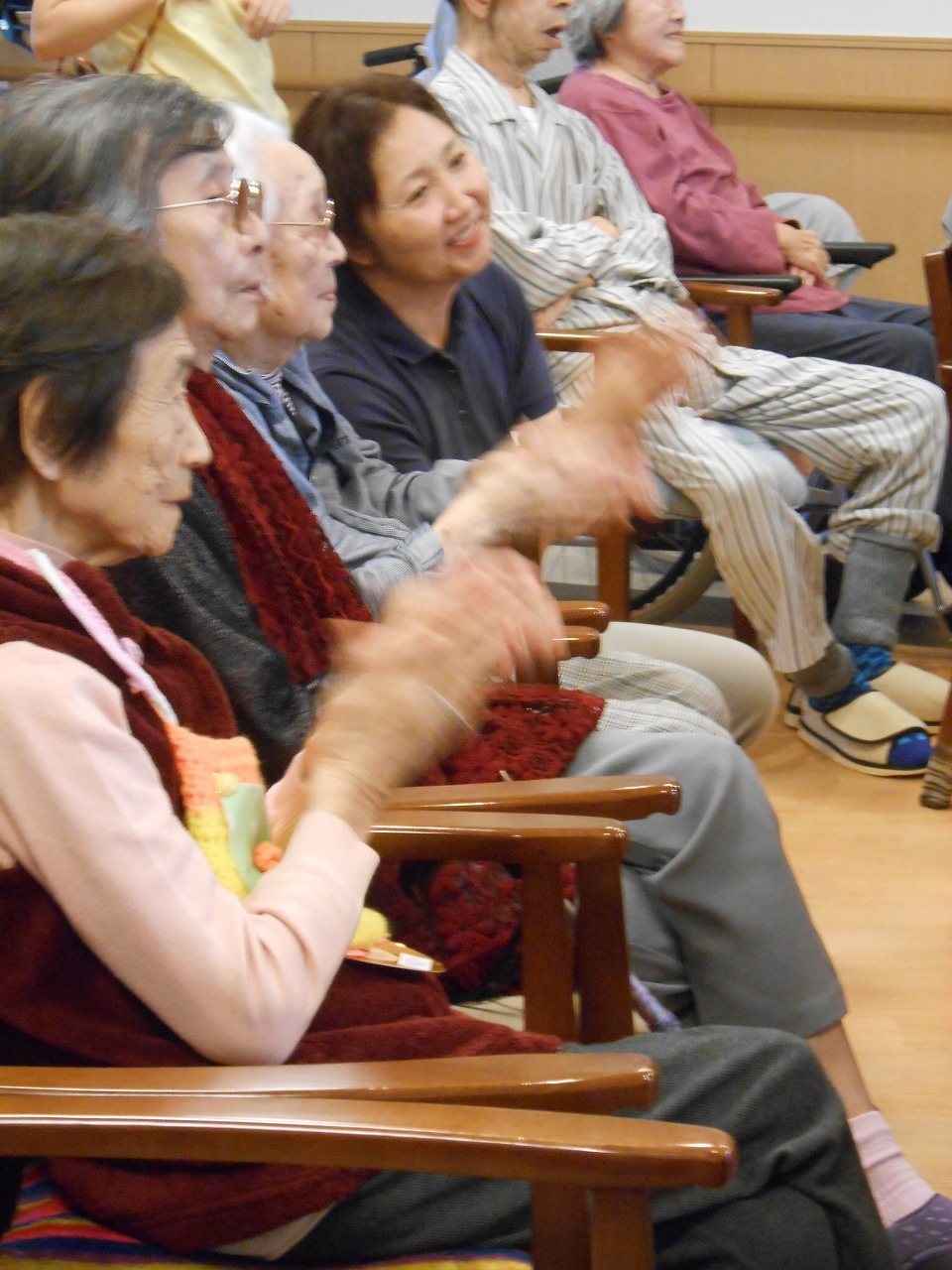 ご入居者さまも、楽しそうに手拍子されたり、歌を一緒に口づさまれたり ^ ^