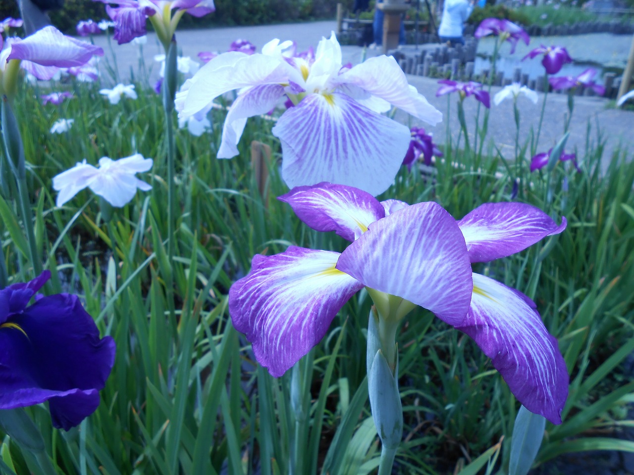 満開の「花菖蒲」、濃い紫色から薄紫色、白色や中には薄い桃色まで。。。