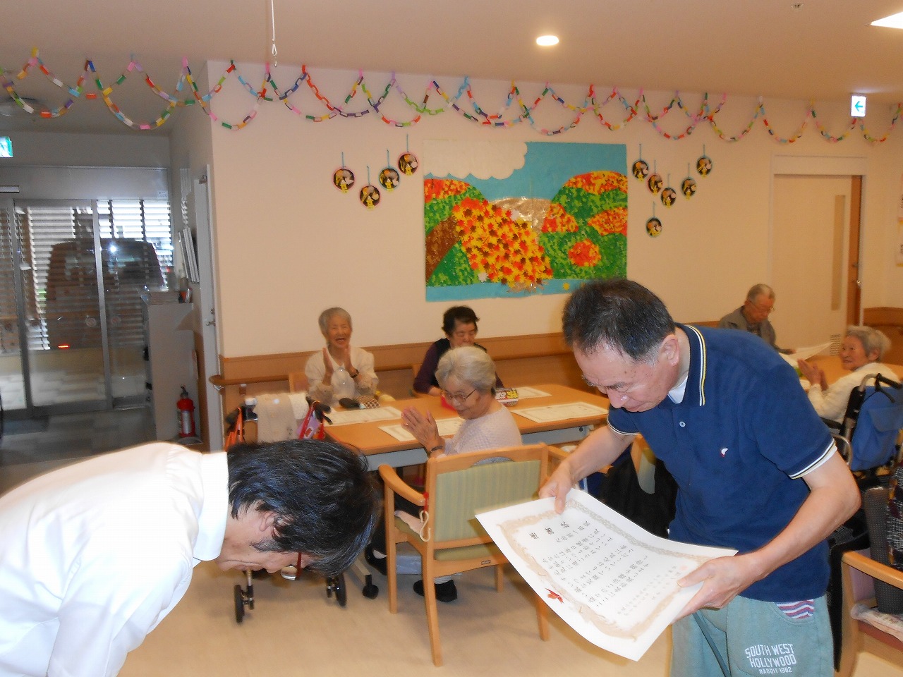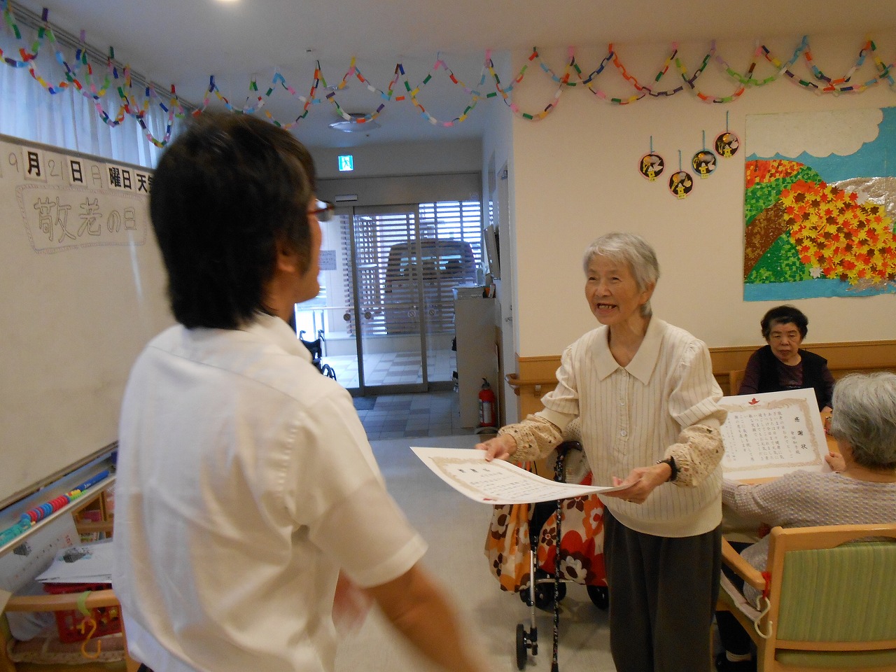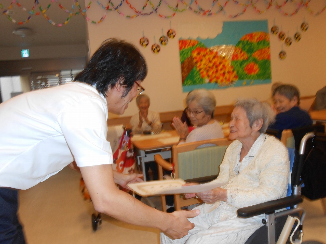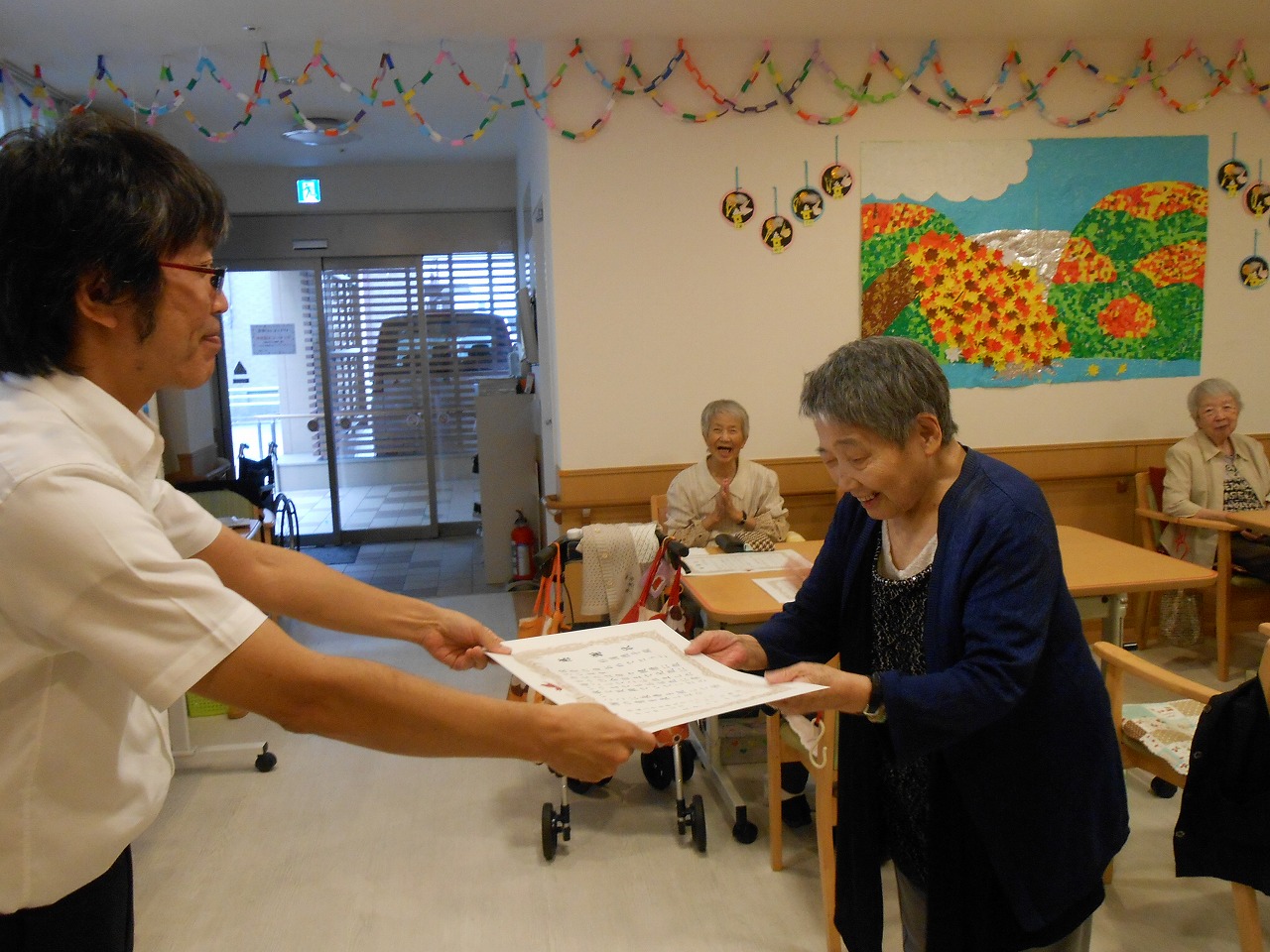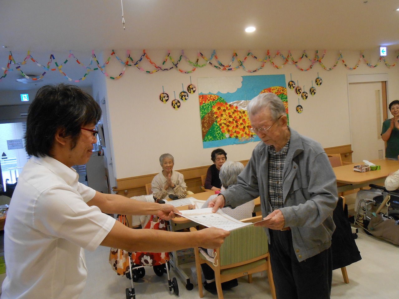 今年の敬老の日、デイサービスではお祝い会を開催いたしました。