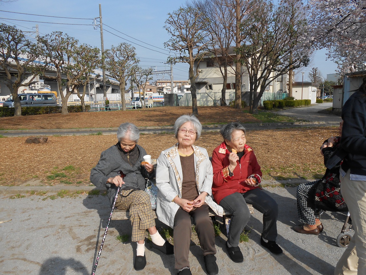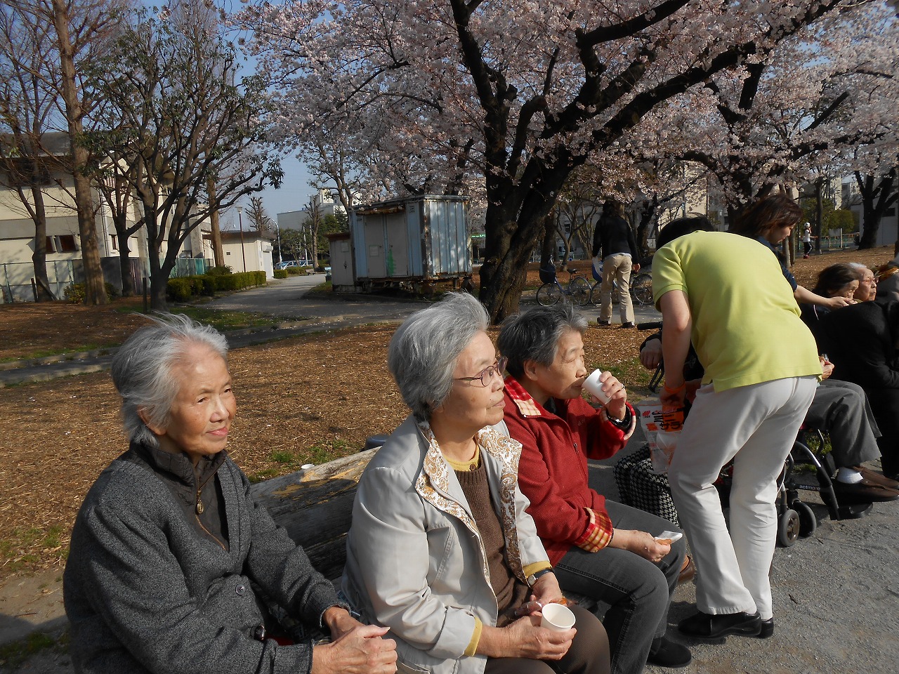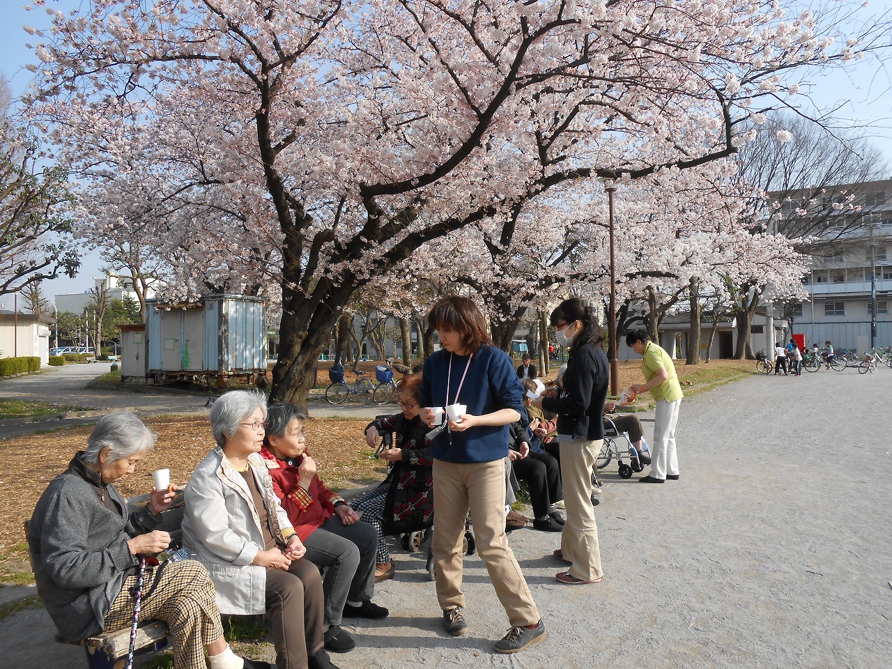 これぞ満開!と咲きあふれる桜の元で、お茶を頂いたり、桜の花びらを拾ったり。。。