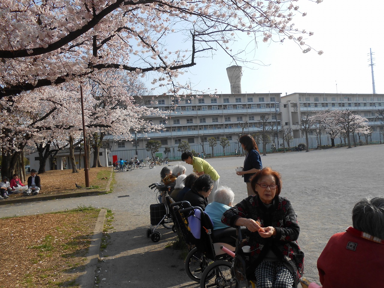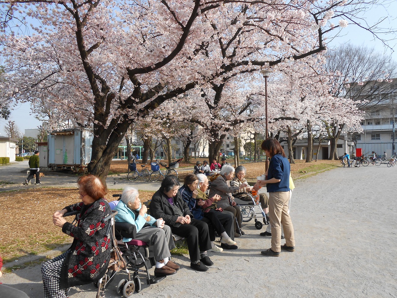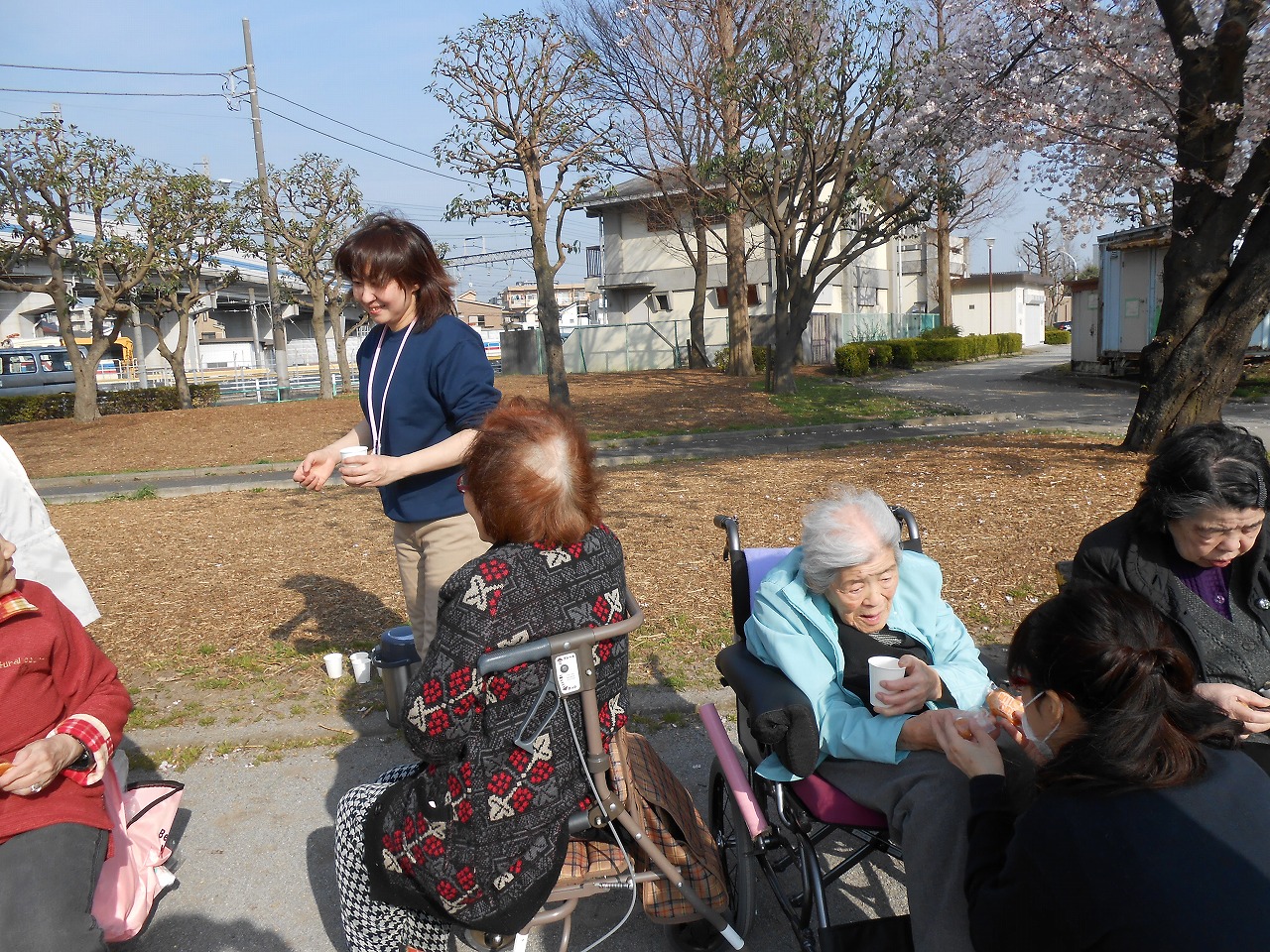 これぞ満開!と咲きあふれる桜の元で、お茶を頂いたり、桜の花びらを拾ったり。。。