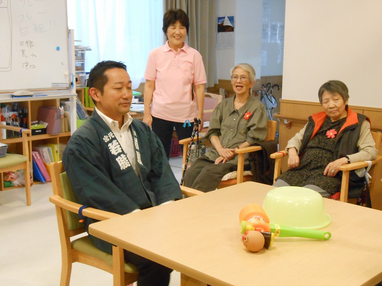 私も車いすのご入居者様に呼ばれ、“借り物” ?として参加しました(^^;