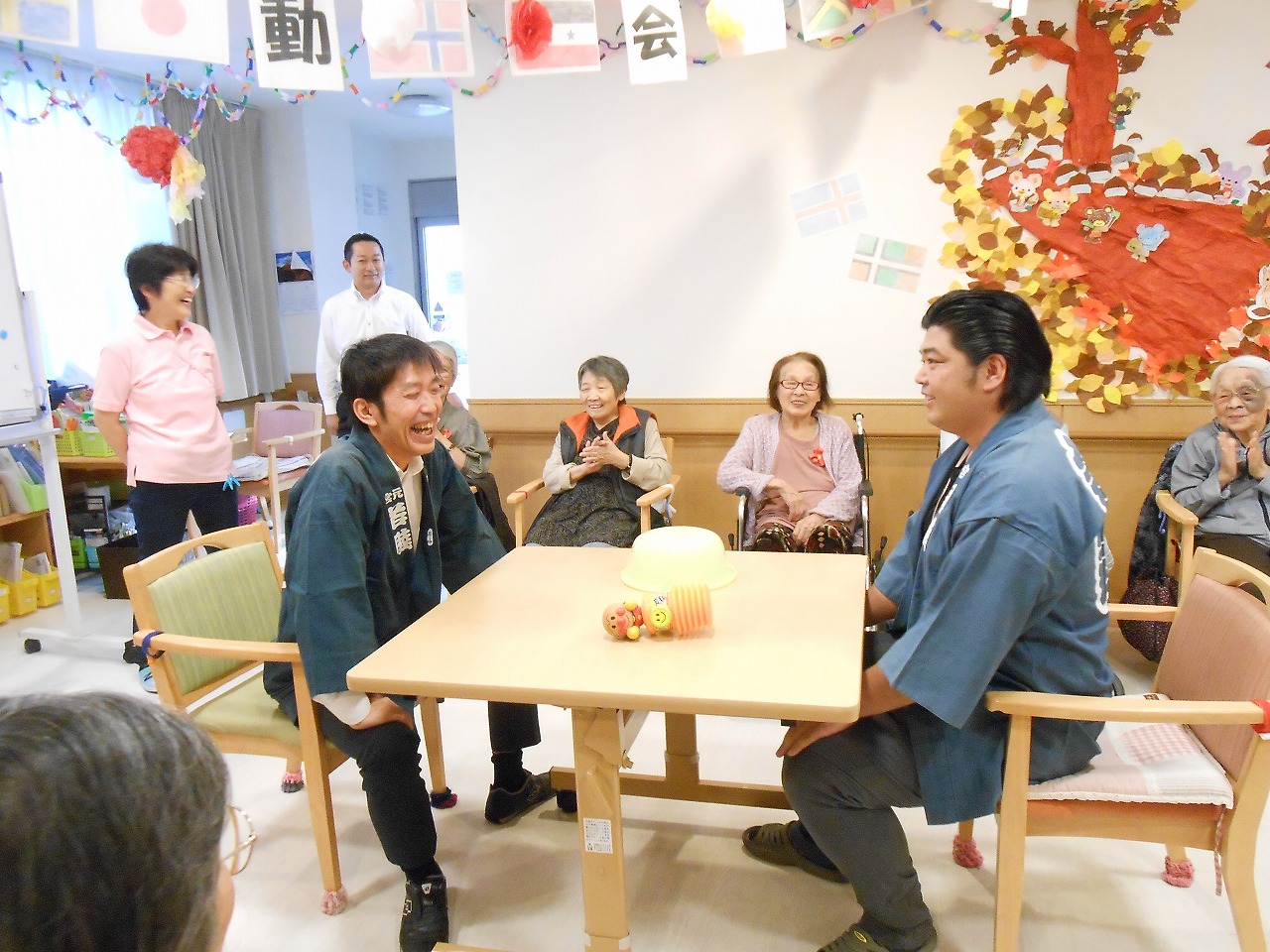 また、スタッフ・職員対抗のじゃんけんゲームでは、まわりで応援くださっている