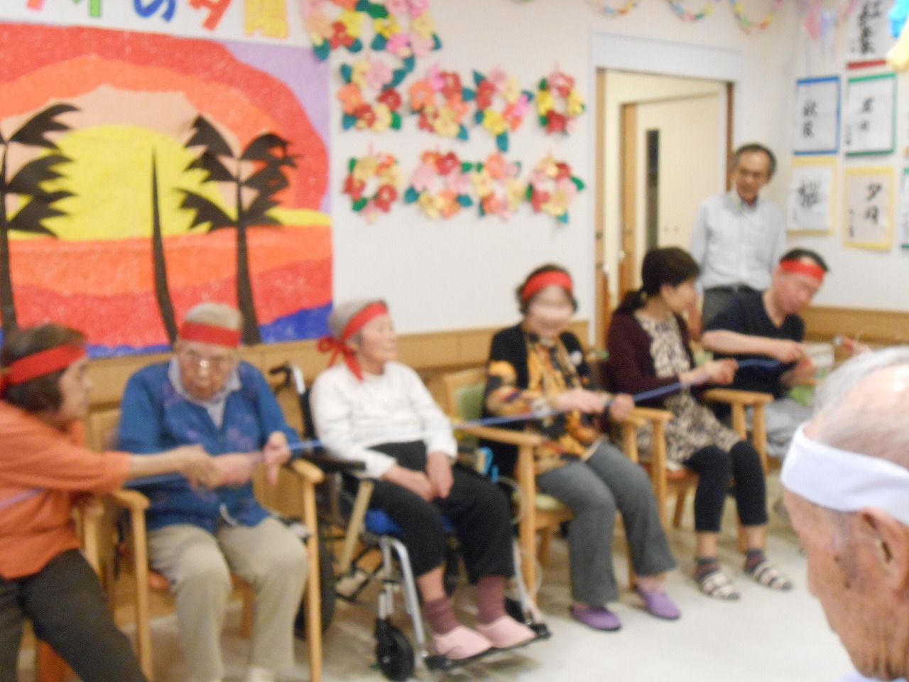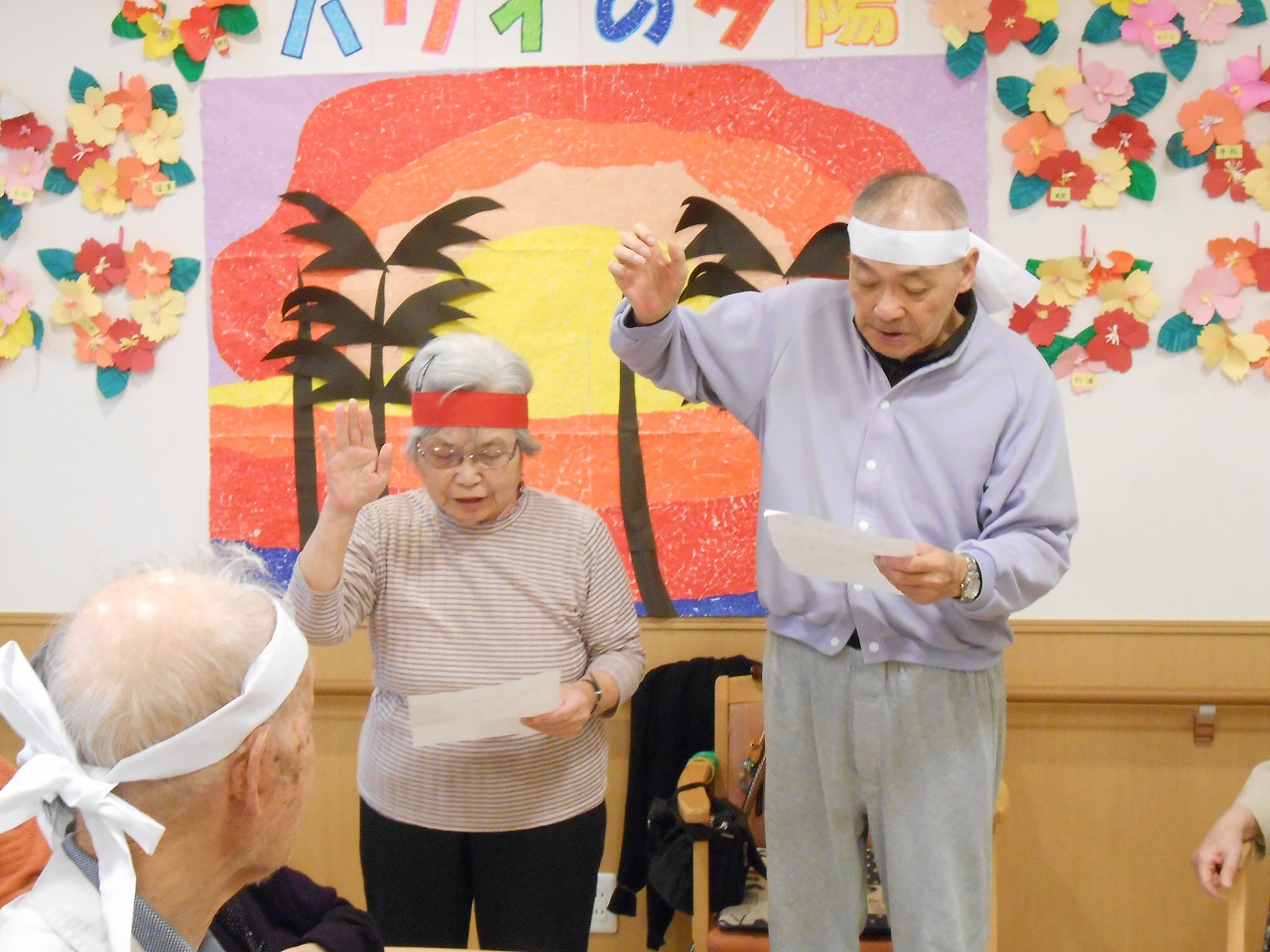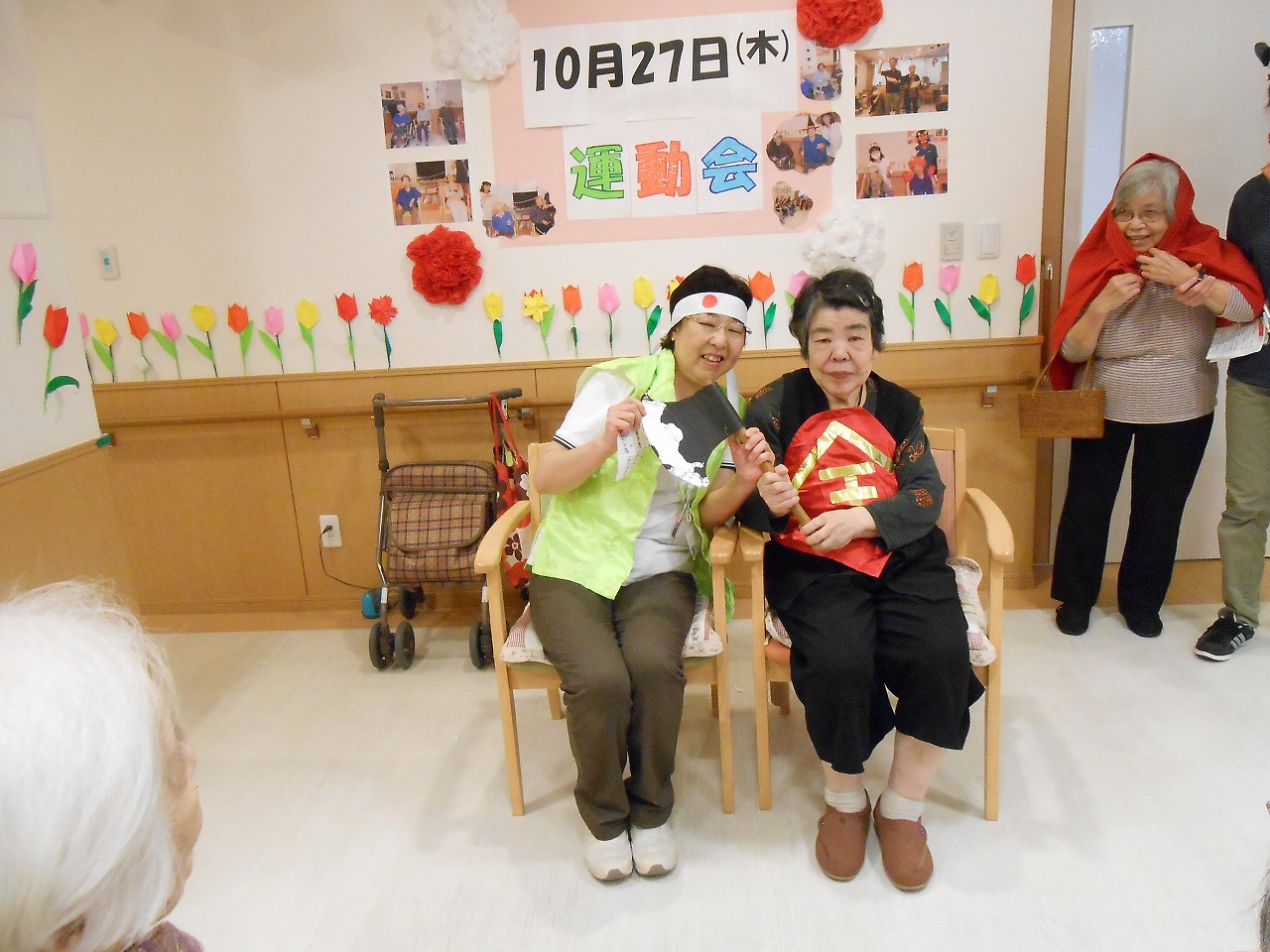 紅白の「ハチマキ」をされたご利用者様の選手宣誓に始まり