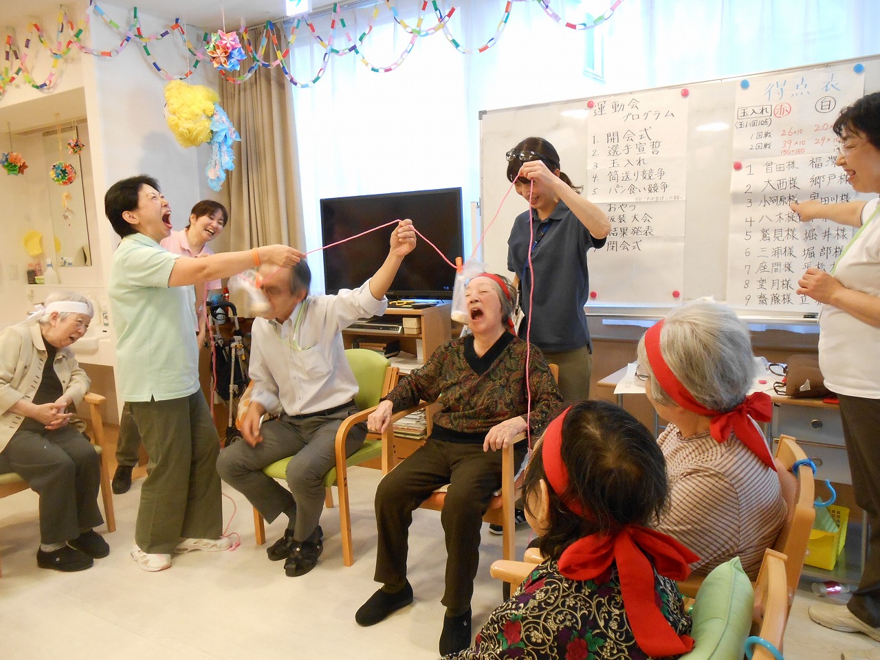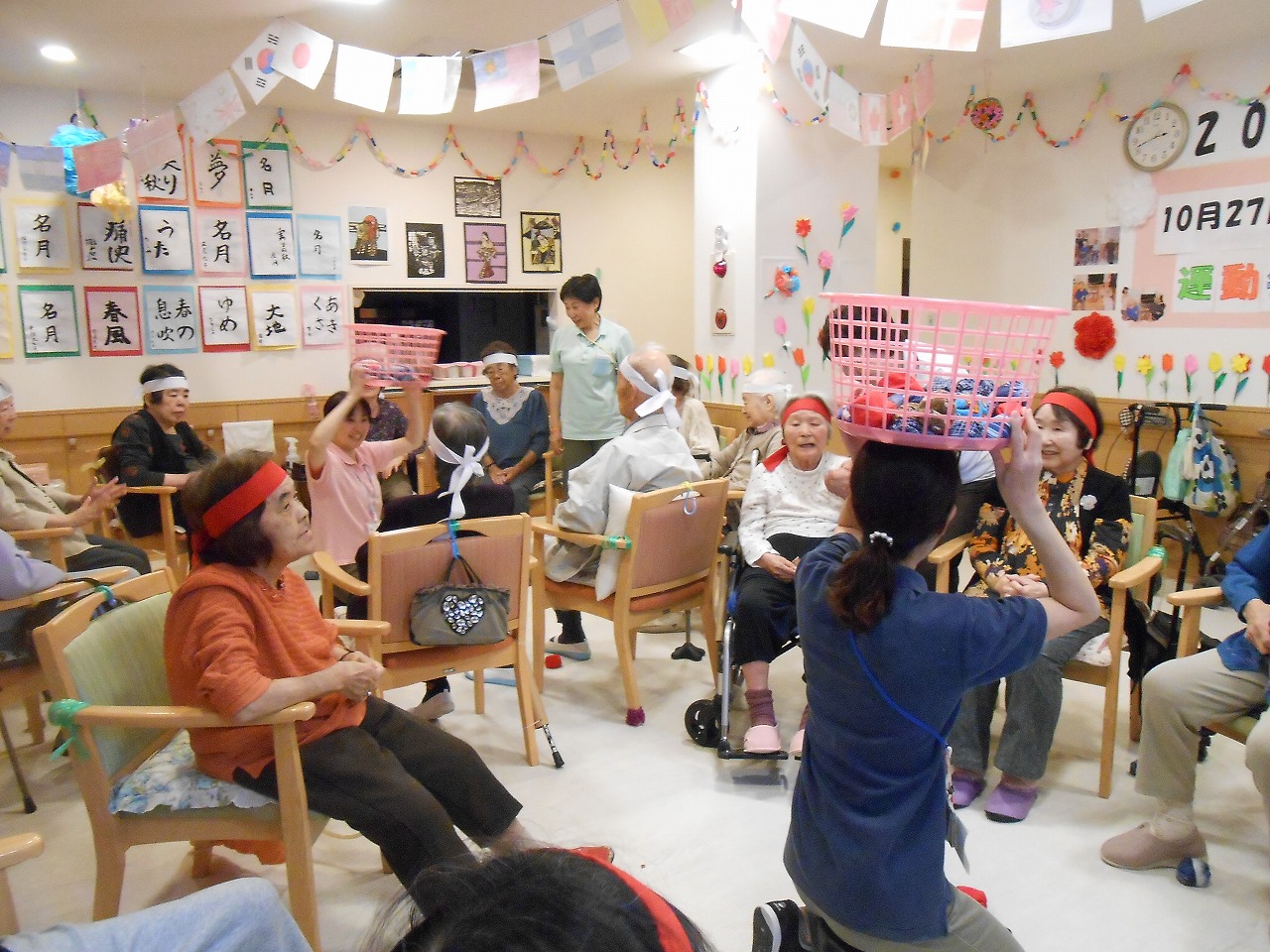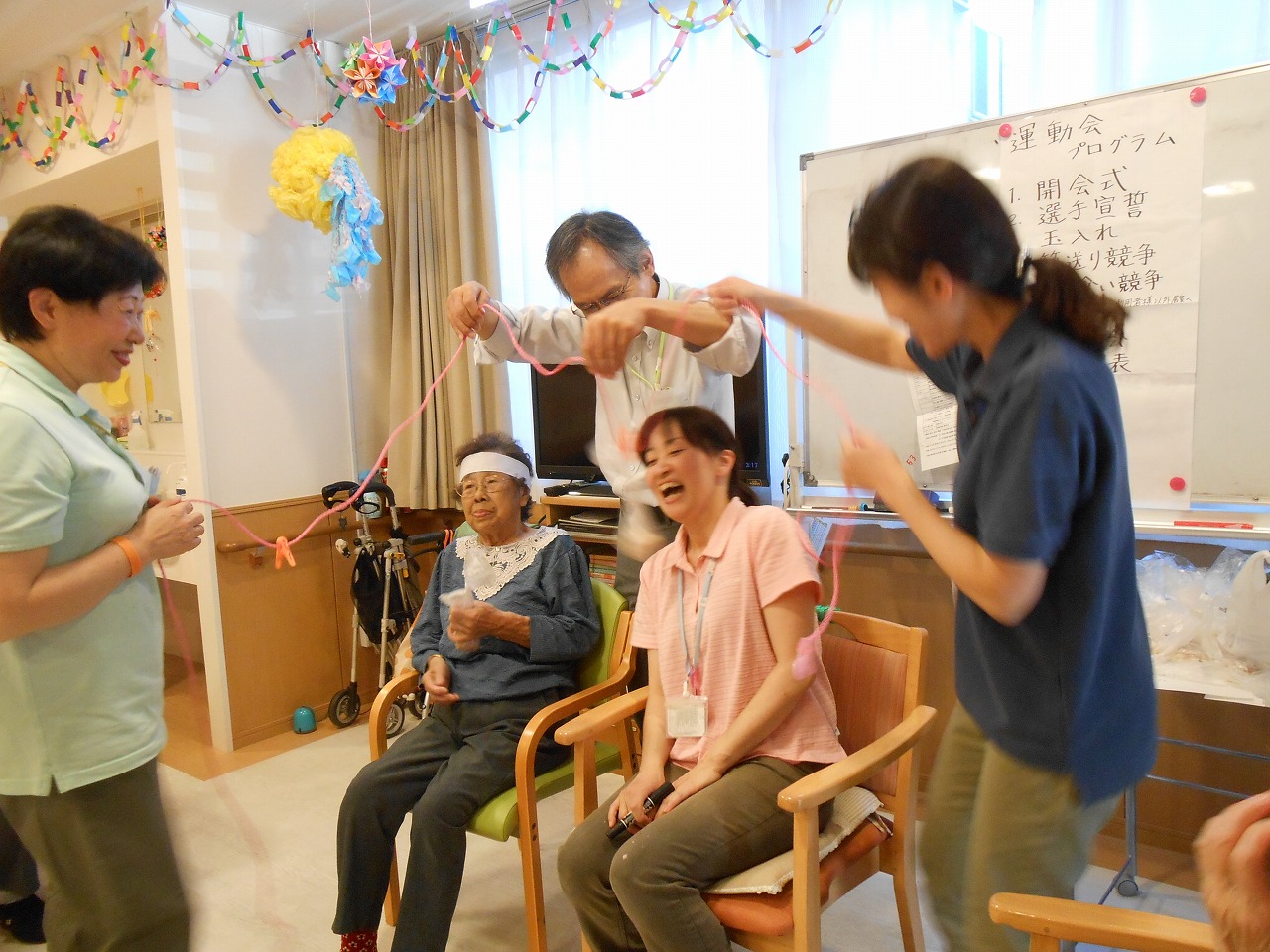 紅白の「ハチマキ」をされたご利用者様の選手宣誓に始まり